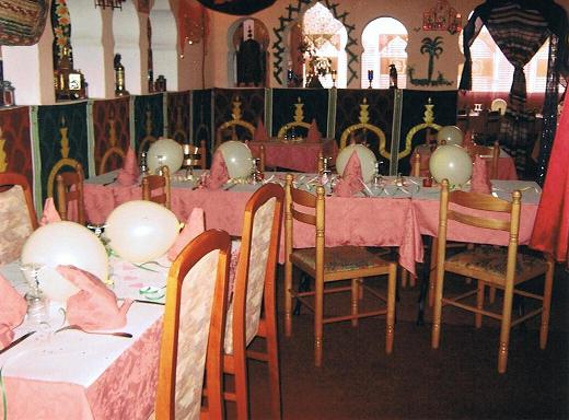 Le week-end, on sert avec les babouches et la gandora ; l'ambiance est assurée dans un décor des milles et une nuits.